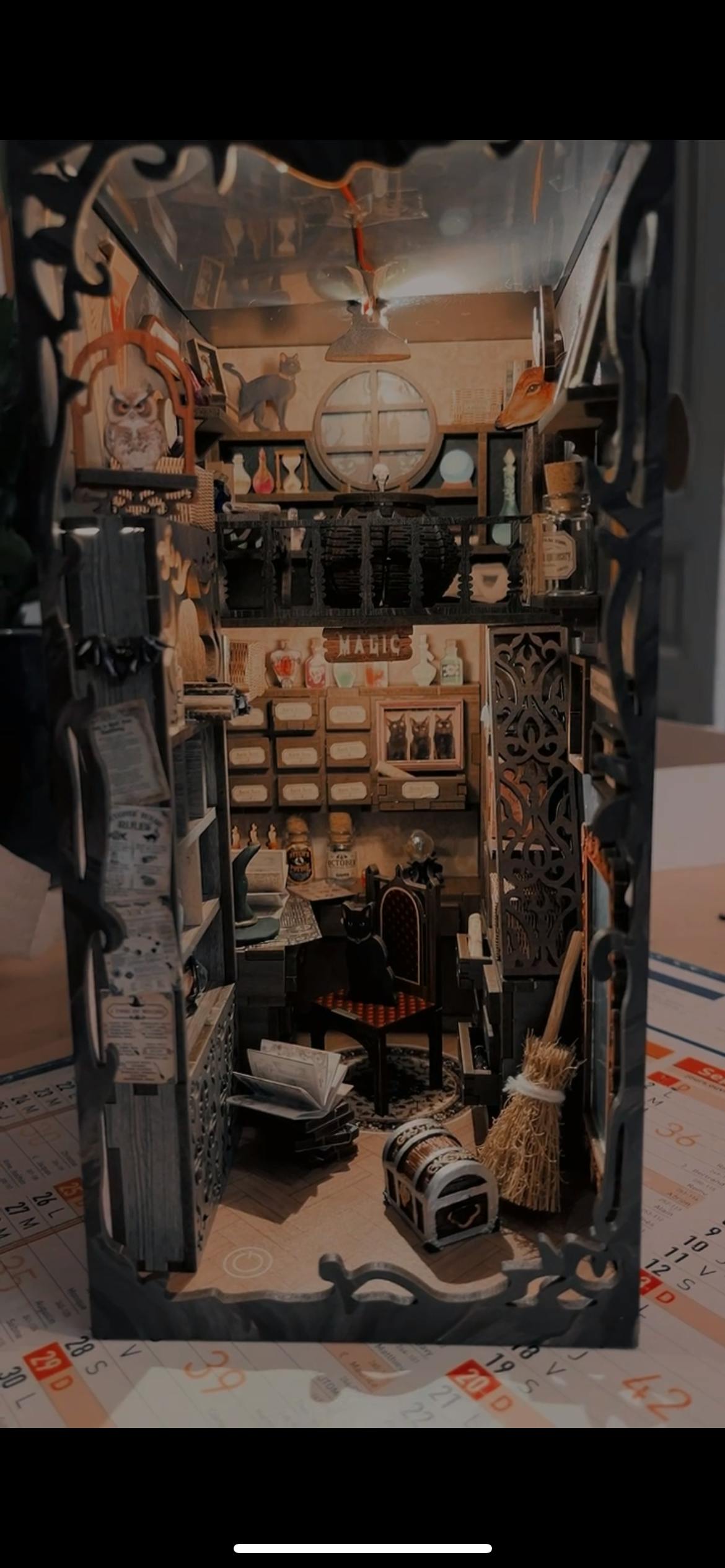 À exposer dans une bibliothèque ou à offrir à un passionné de mondes magiques, Pharmacie magique est un hommage miniature à la sorcellerie douce et aux savoirs anciens. Parfaite pour décorer un coin lecture, elle attire les regards et fait naître des histoires dans l’imaginaire de chacun. Un petit monde fantastique… que vous aurez créé de vos propres mains.